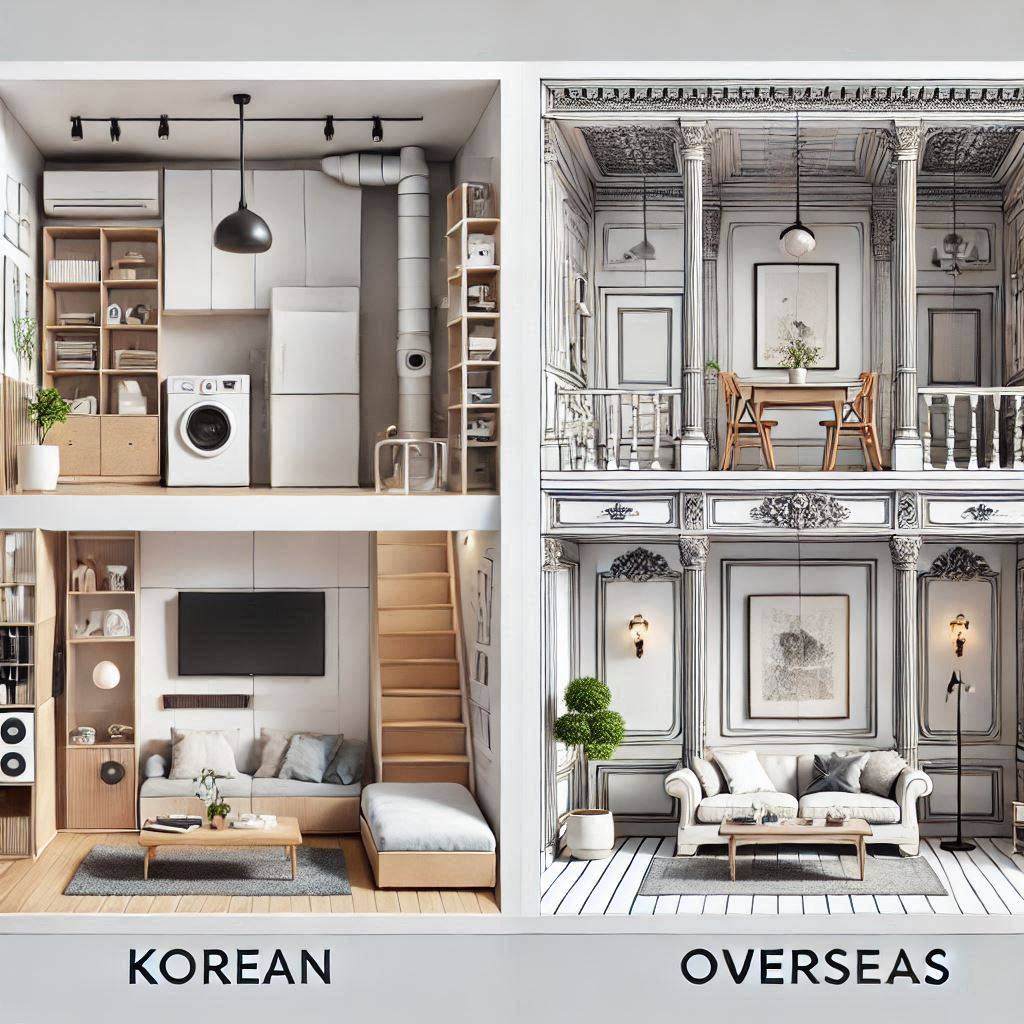 한국과 해외 인테리어의 차이점은 크게 공간 활용 방식, 디자인 접근법, 트렌드에서 확인할 수 있습니다.